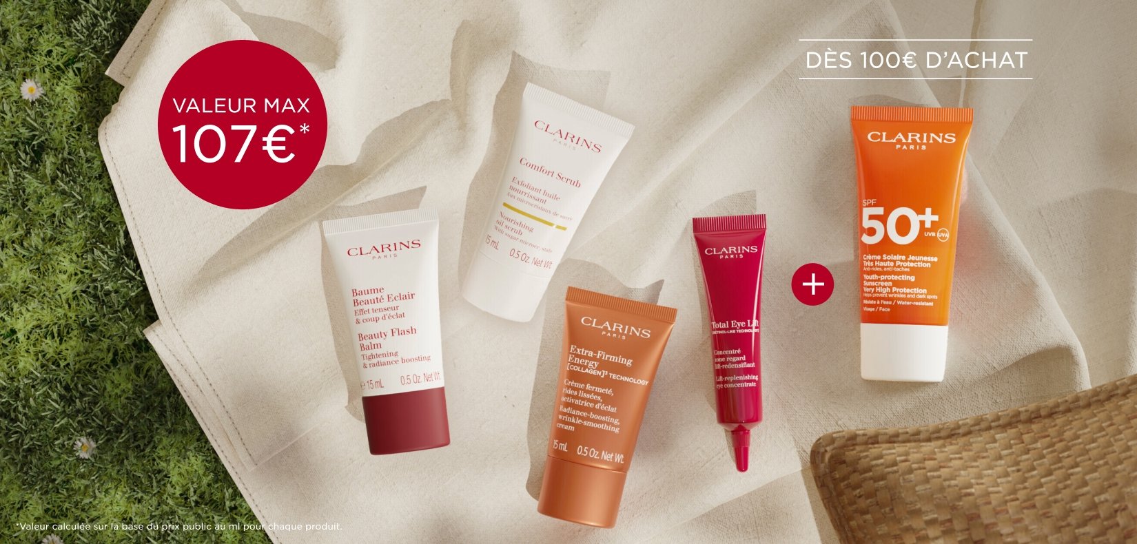 Et dès 100€ d'achat, recevez en plus votre Crème Solaire Visage SPF50+ 30ml en cadeau.